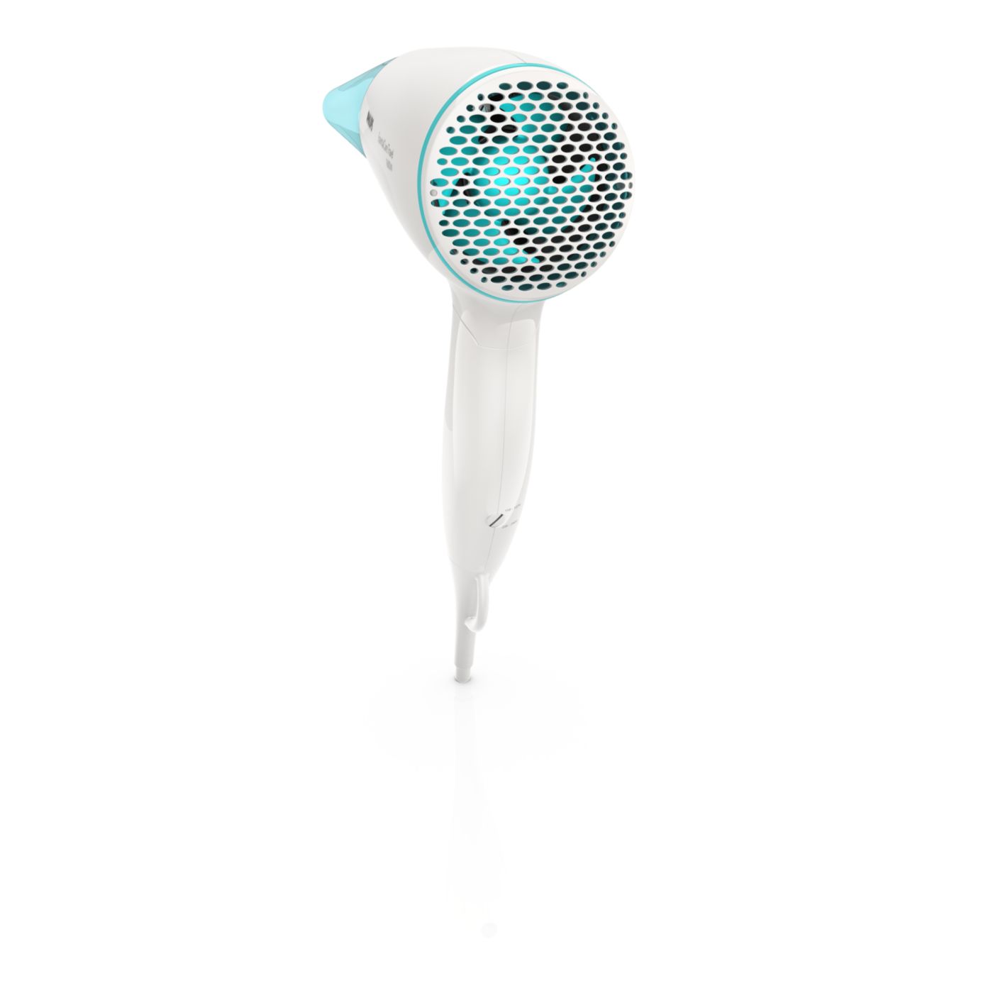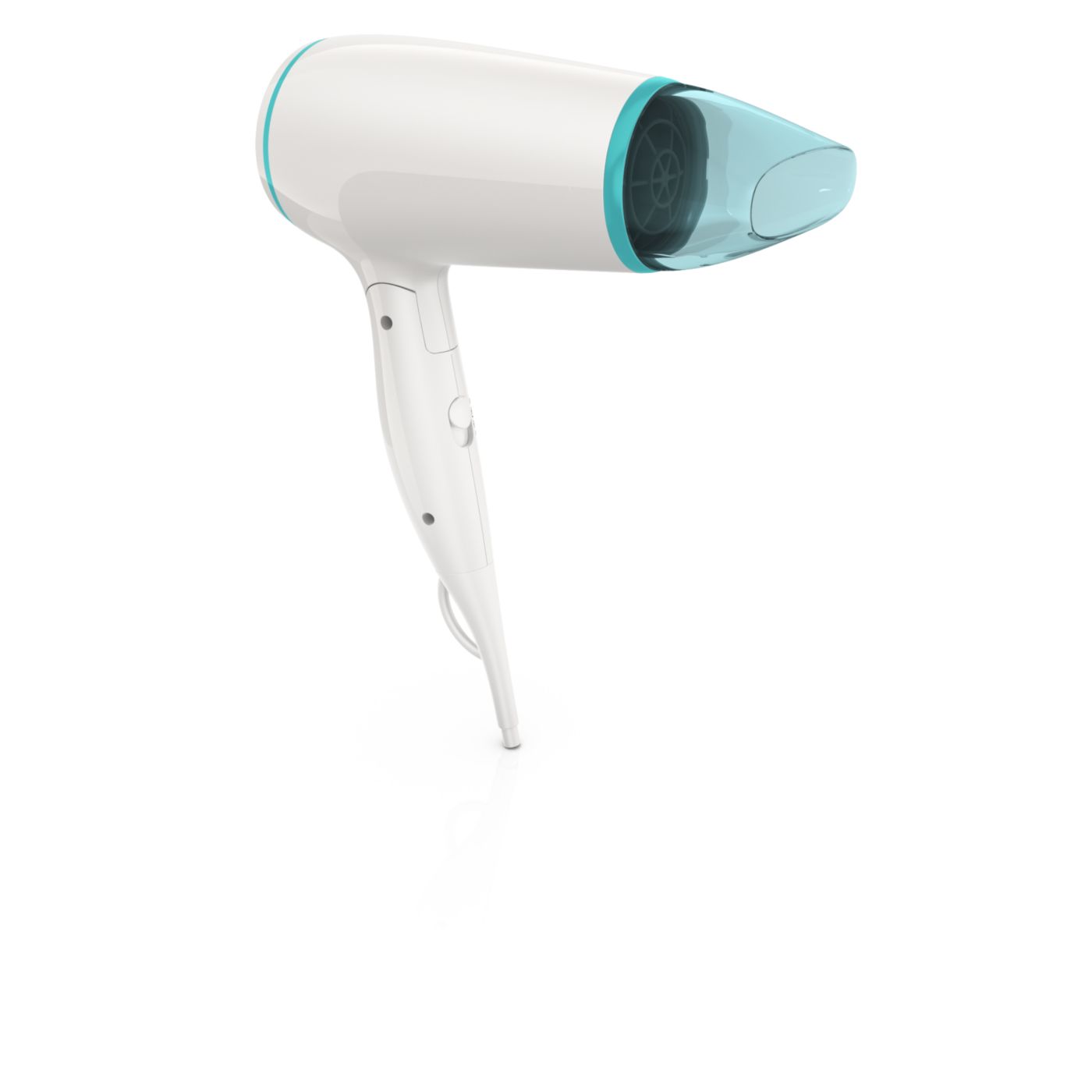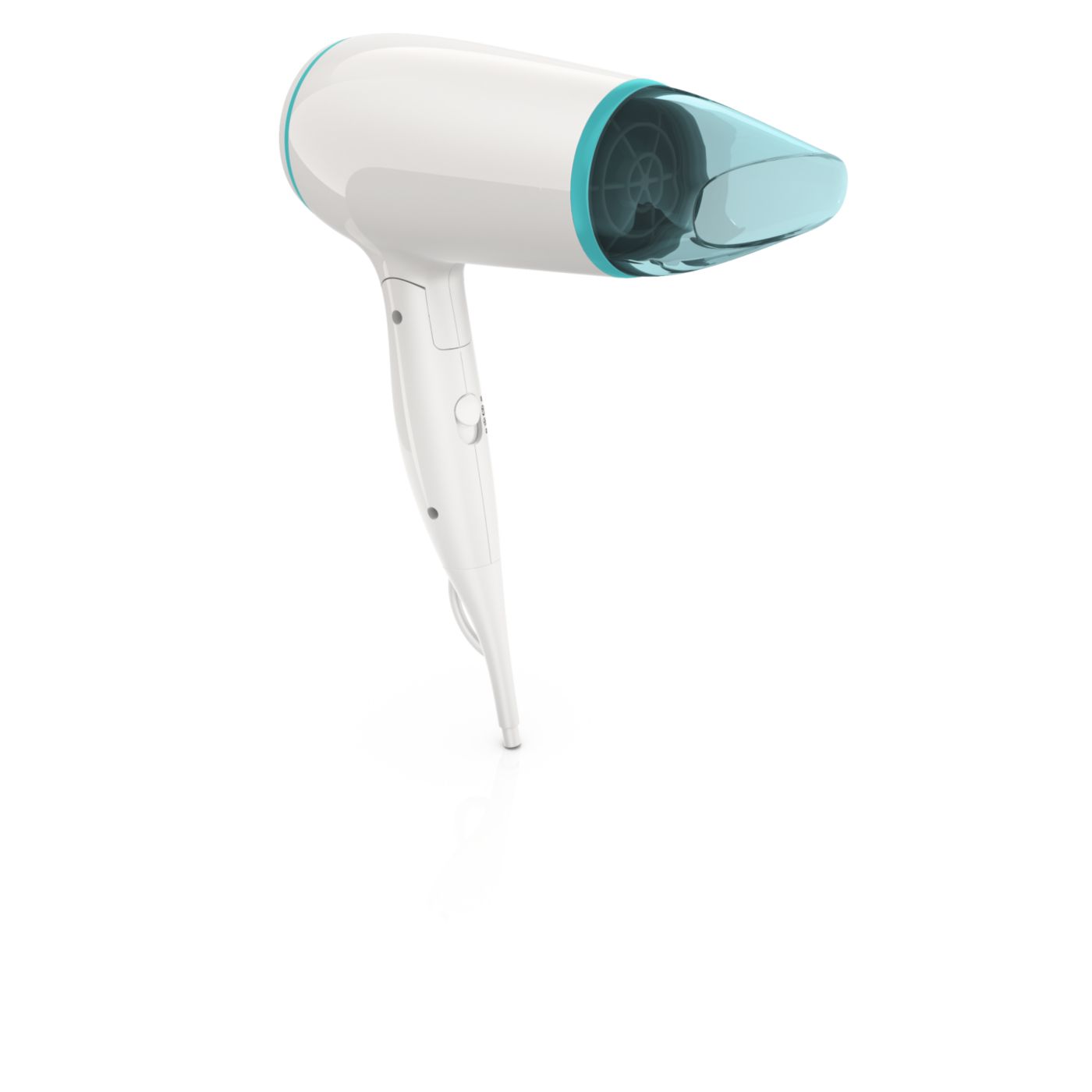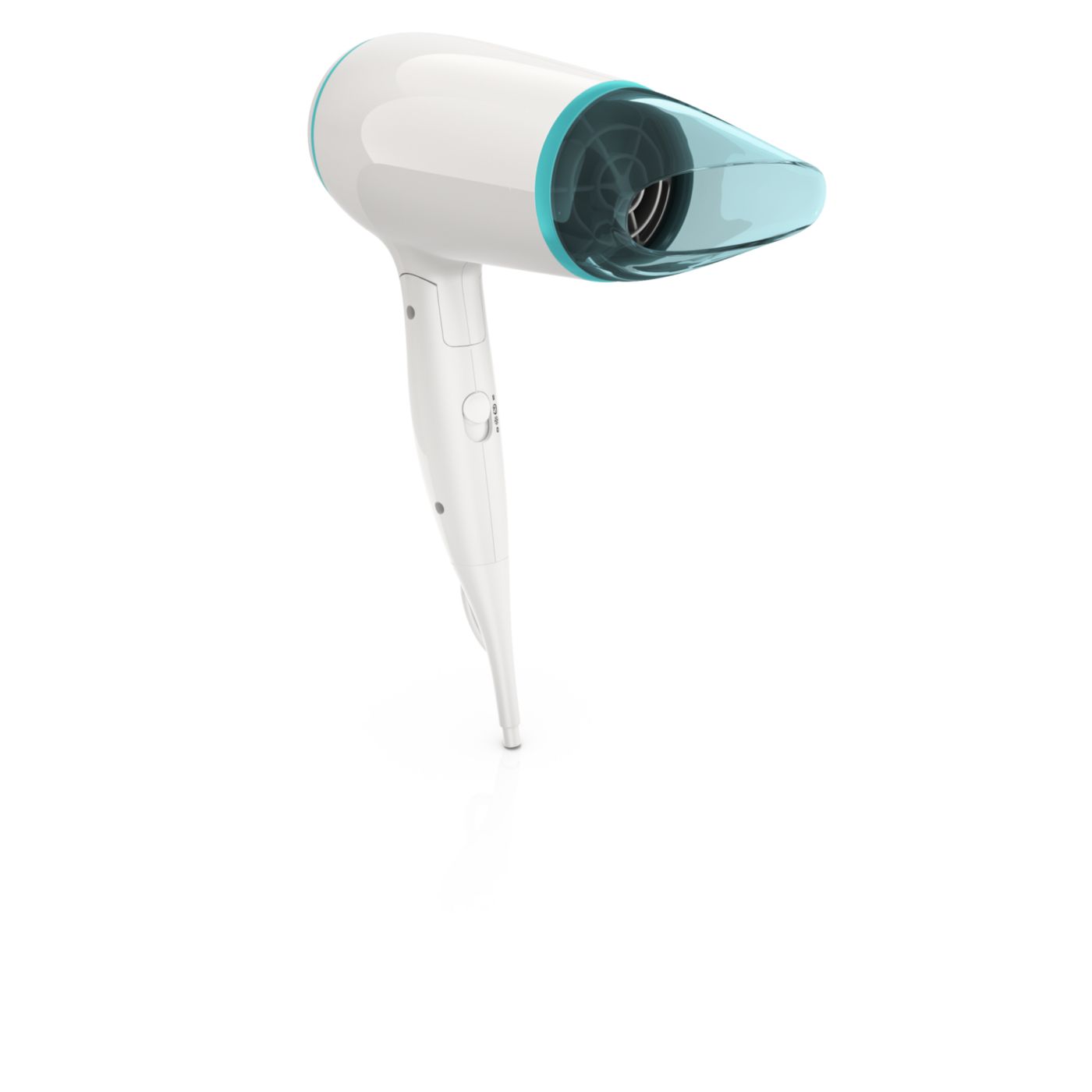 העיצוב הקומפקטי עם הידית המתקפלת מקל על האריזה, האחסון ולקיחת המייבש איתך לכל מקום שתלכי.